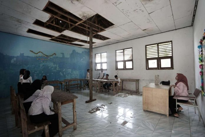 Bangunan yang telah berusia puluhan tahun tersebut mengalami kerusakan parah pada atap, sehingga berpotensi membahayakan keselamatan siswa. Selain itu, kayu-kayu, jendela, lantai, serta fasilitas belajar seperti meja, kursi, dan papan tulis juga dalam kondisi tidak layak guna.