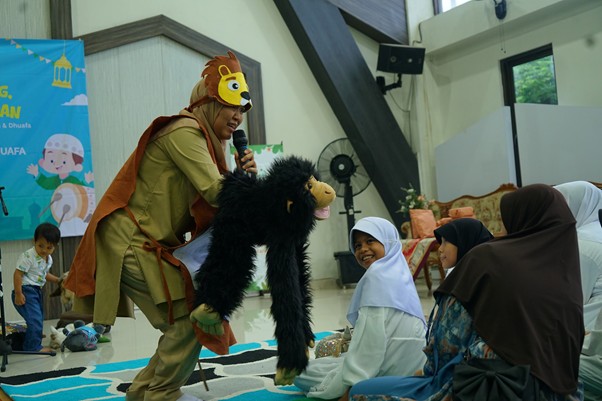Kegiatan diawali dengan pembacaan ayat suci Al-Qur’an, kemudian dilanjutkan dengan dongeng interaktif oleh Palupi Mutiasih. Melalui seni ventriloquist dan boneka tangan, Palupi menyampaikan kisah inspiratif tentang amalan di bulan Ramadan dengan cara yang menarik dan mudah dipahami anak-anak.