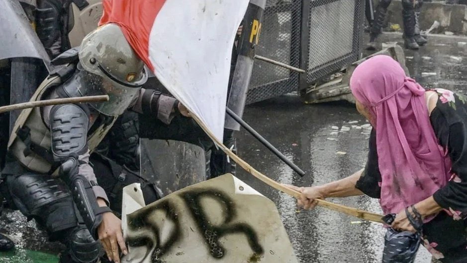 Emak-Emak Berjilbab Pink Jadi Simbol Perlawanan dalam Demo DPR