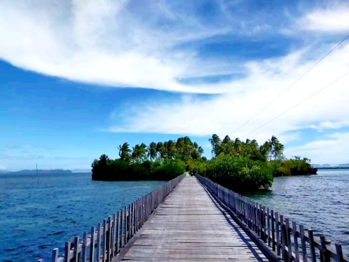 Dusun Pelita Jaya terhubung dengan spot ekowisata Pulau Osi melalui gapura yang dilengkapi dengan jembatan kayu. Jembatan kayu selebar 2,5 meter ini teratur mengarah ke rumah panggung di Pulau Osi.