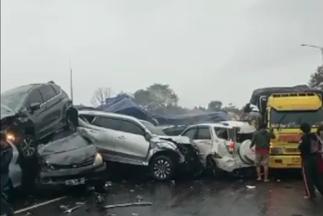 PURWAKARTA – Sebanyak 29 orang menjadi korban kecelakaan beruntun di Kilometer (Km) 92 Tol Cipularang, Senin (11/11/2024) sore. Dengan rincian 21 orang mengalami luka ringan, 7 orang luka berat, dan satu orang anak berinisial S berusia 14 tahun meninggal dunia.