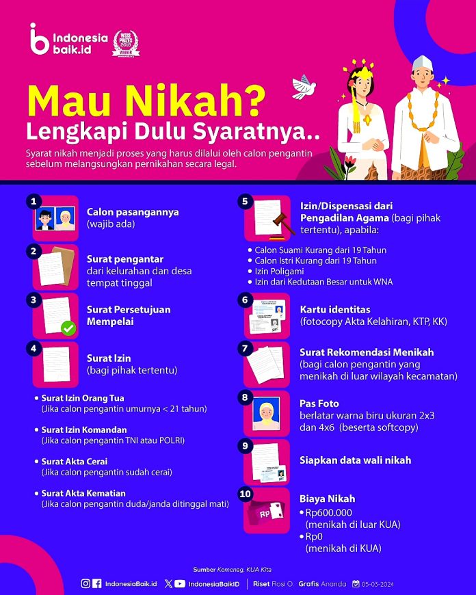 JAKARTA – Proses pernikahan mengharuskan calon pasangan untuk menjalani serangkaian persyaratan sebelum meresmikan hubungan secara sah menurut hukum.