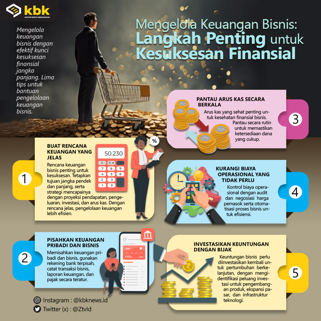 Infografis Mengelola Keuangan Bisnis: Langkah Penting untuk Kesuksesan Finansial By Aziz - August 16, 2024 FacebookTwitterPinterestWhatsApp JAKARTA – Mengelola keuangan bisnis dengan efektif kunci kesuksesan finansial jangka panjang. Lima tips untuk bantuan pengelolaan keuangan bisnis. Advertisement