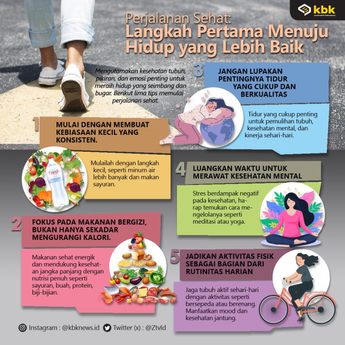 Infografis Perjalanan Sehat: Langkah Pertama Menuju Hidup yang Lebih Baik By Aziz - October 18, 2024 FacebookTwitterPinterestWhatsApp JAKARTA – Mengutamakan kesehatan tubuh, pikiran, dan emosi penting untuk meraih hidup yang seimbang dan bugar. Berikut lima tips memulai perjalanan sehat. Advertisement