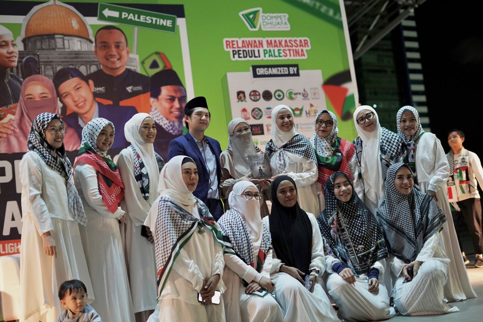 Diketahui Halifa bersama komunitas Bareng Sister Fillah hadir sejak sore. Kompak mengenakan pakaian serba putih, dan atribut lain dengan motif nuansa Palestina pada hijabnya.